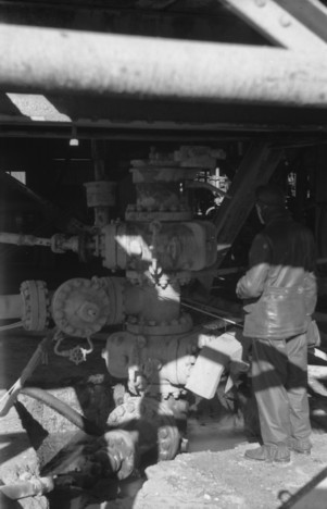 Absperrventil (Preventer) im Kellerraum, 01.03.1953 (Aufnahme: Hugo Mittelberg, Osnabrück) |